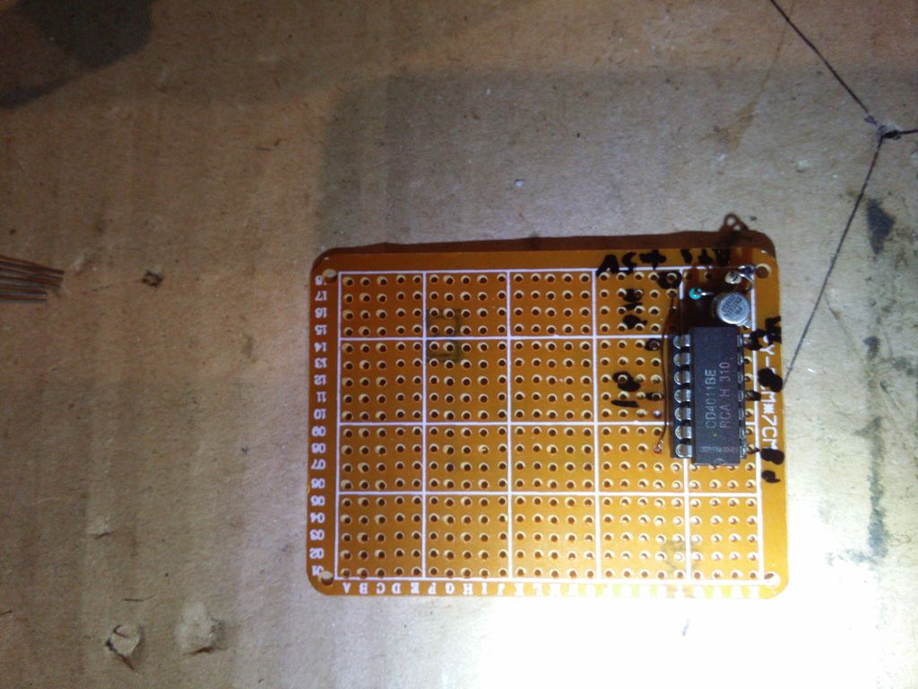 Assemblage du CD4011 et de ses composants annexe sur la plaque pastillée :