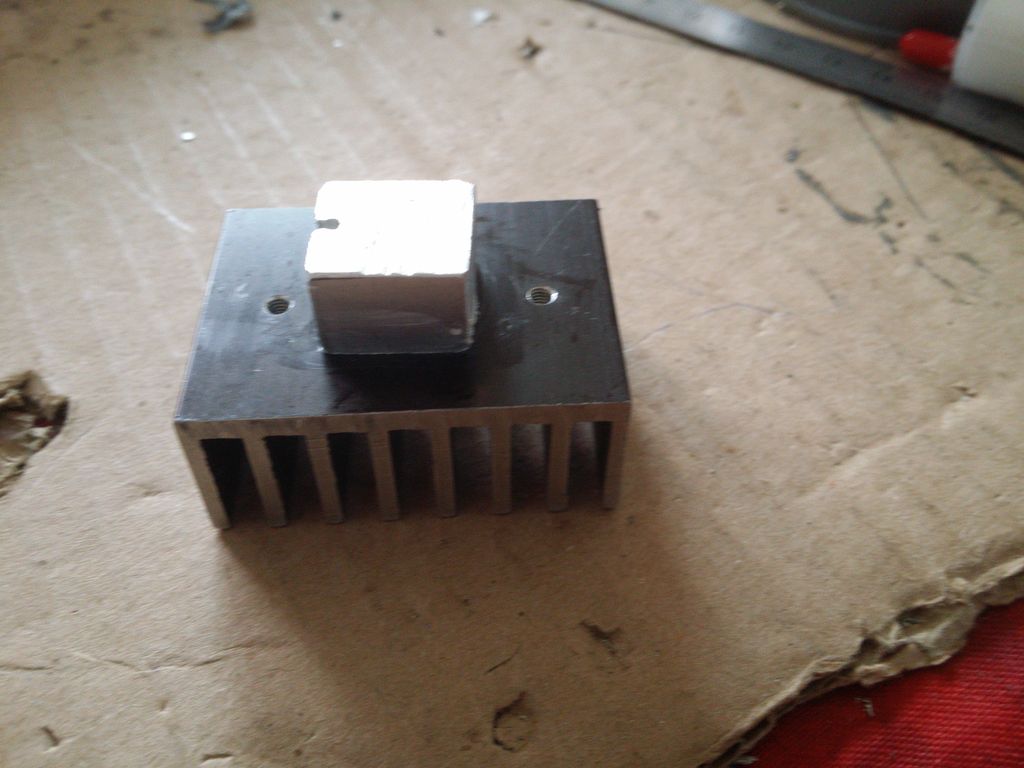 Visser le cube d'alu au radiateur à ailette en insérant entre les deux de la pate thermique.