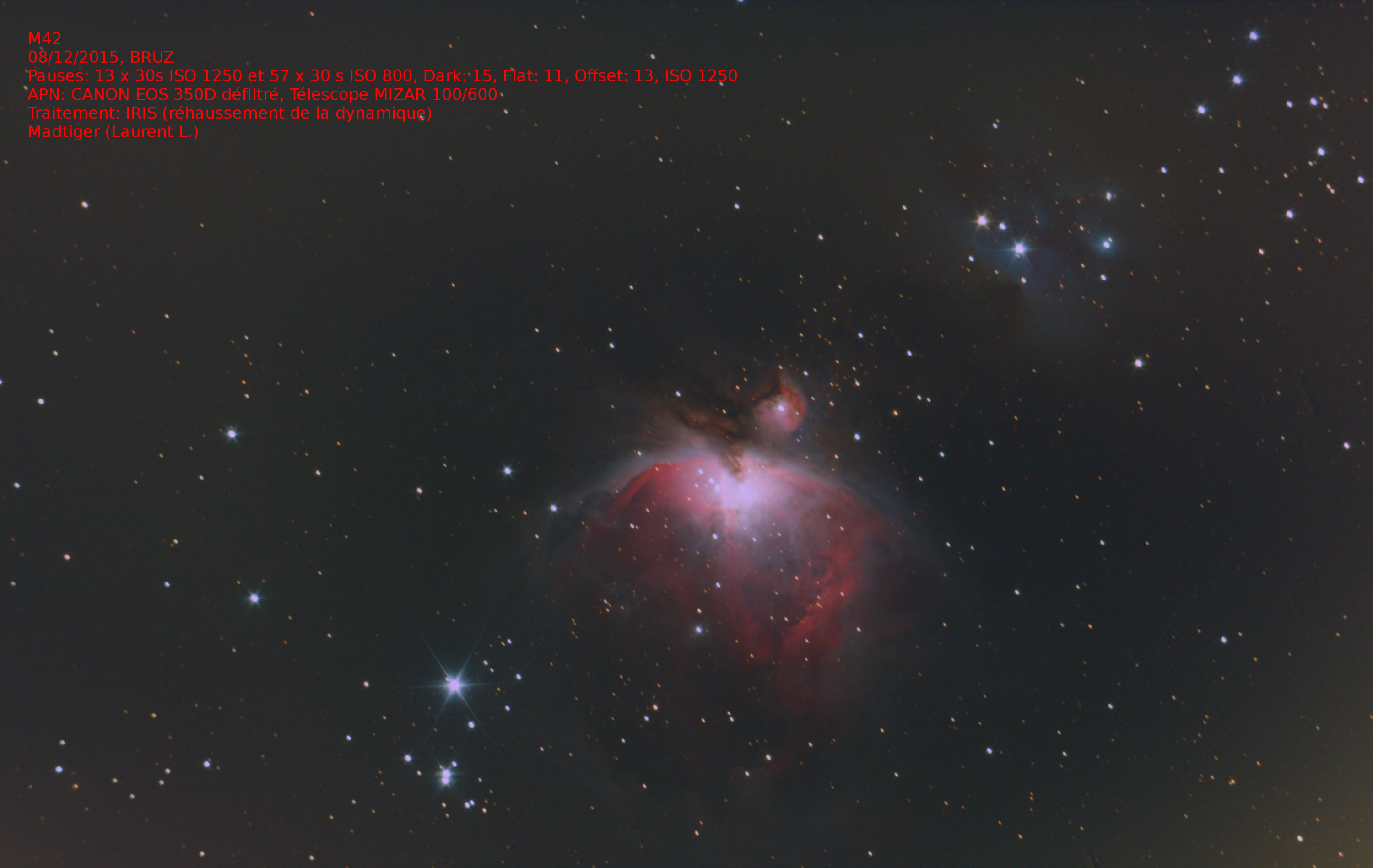 Pauses: 13 x 30s ISO 1250 et 57 x 30 s ISO 800, Dark: 15, Flat: 11, Offset: 13, ISO 1250