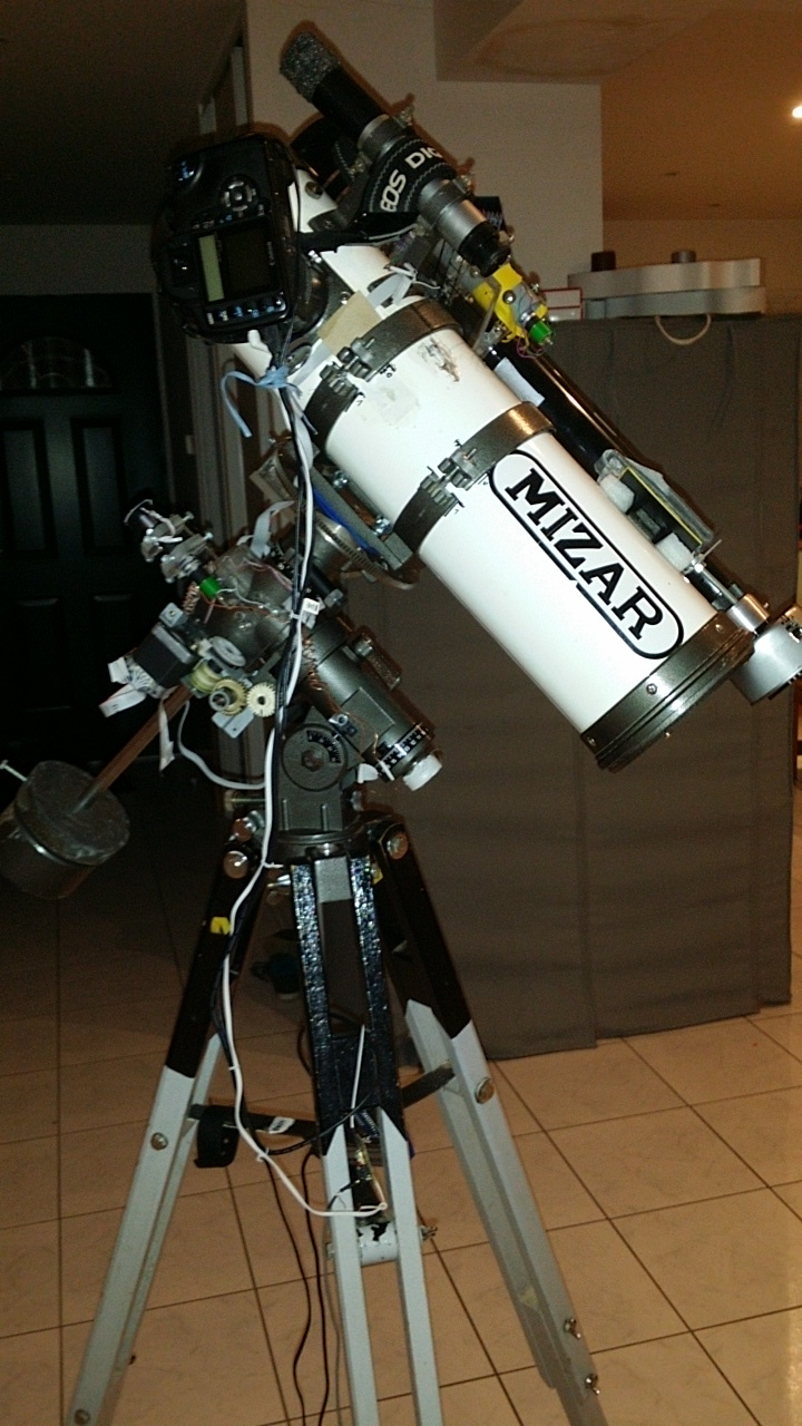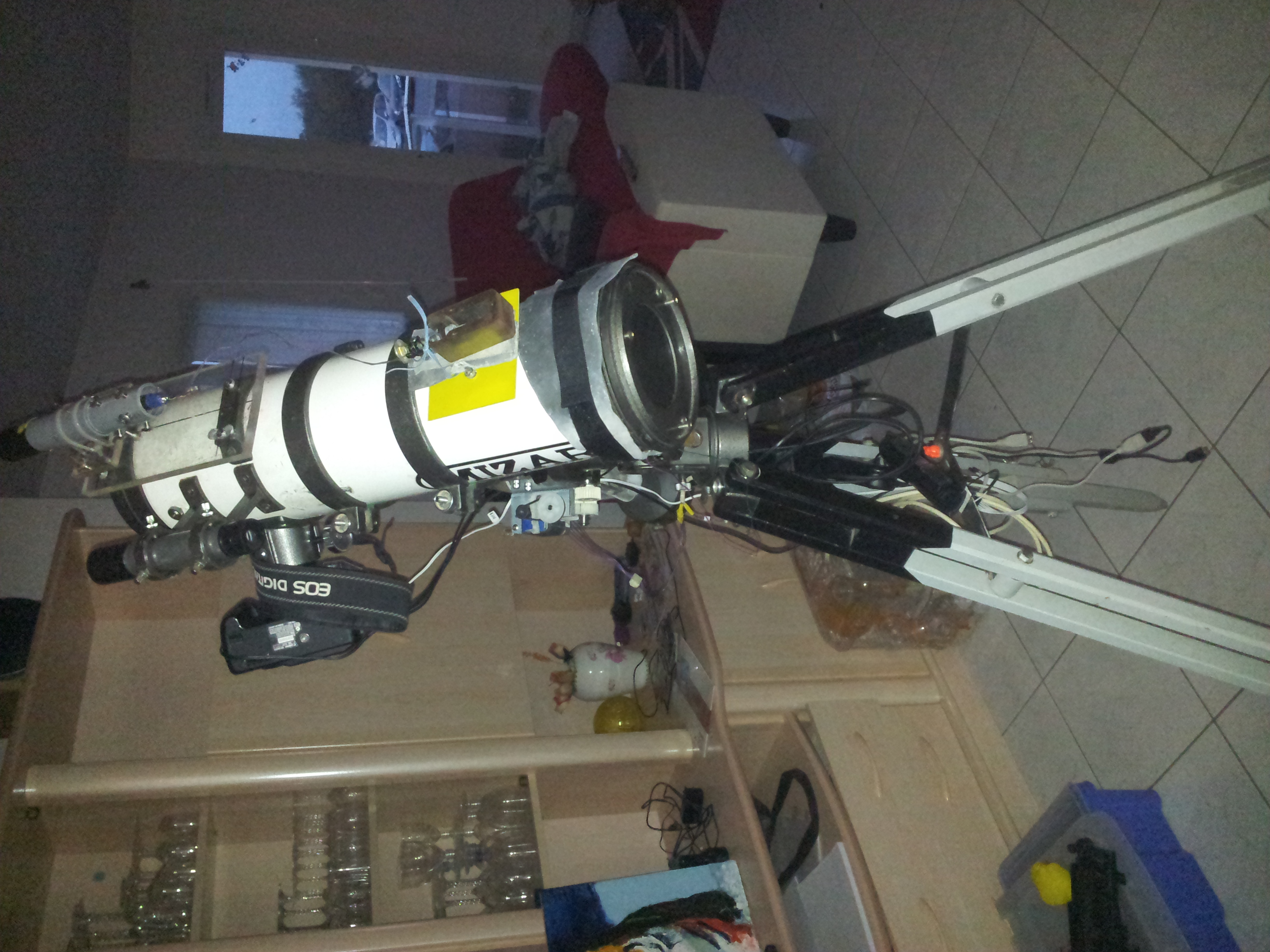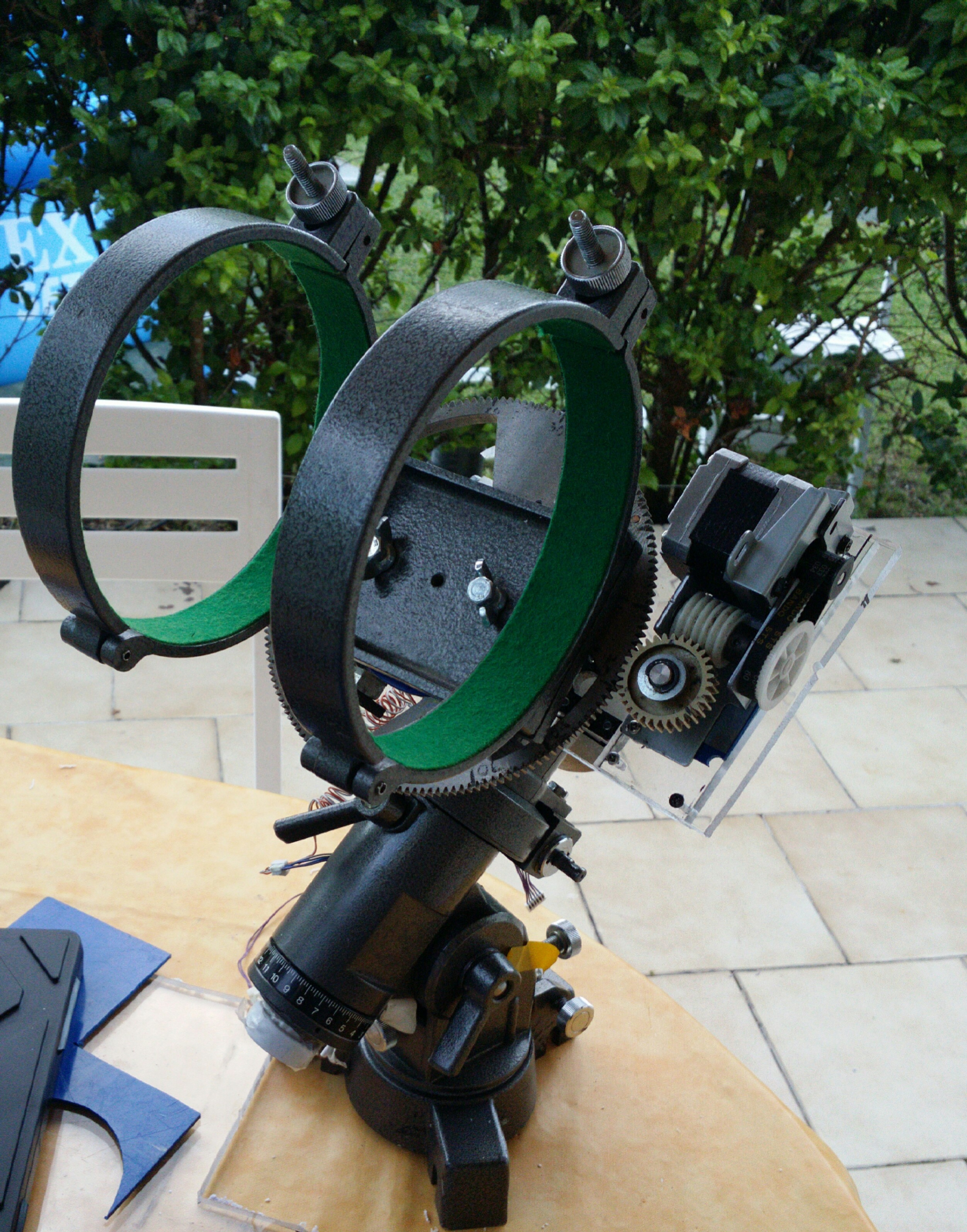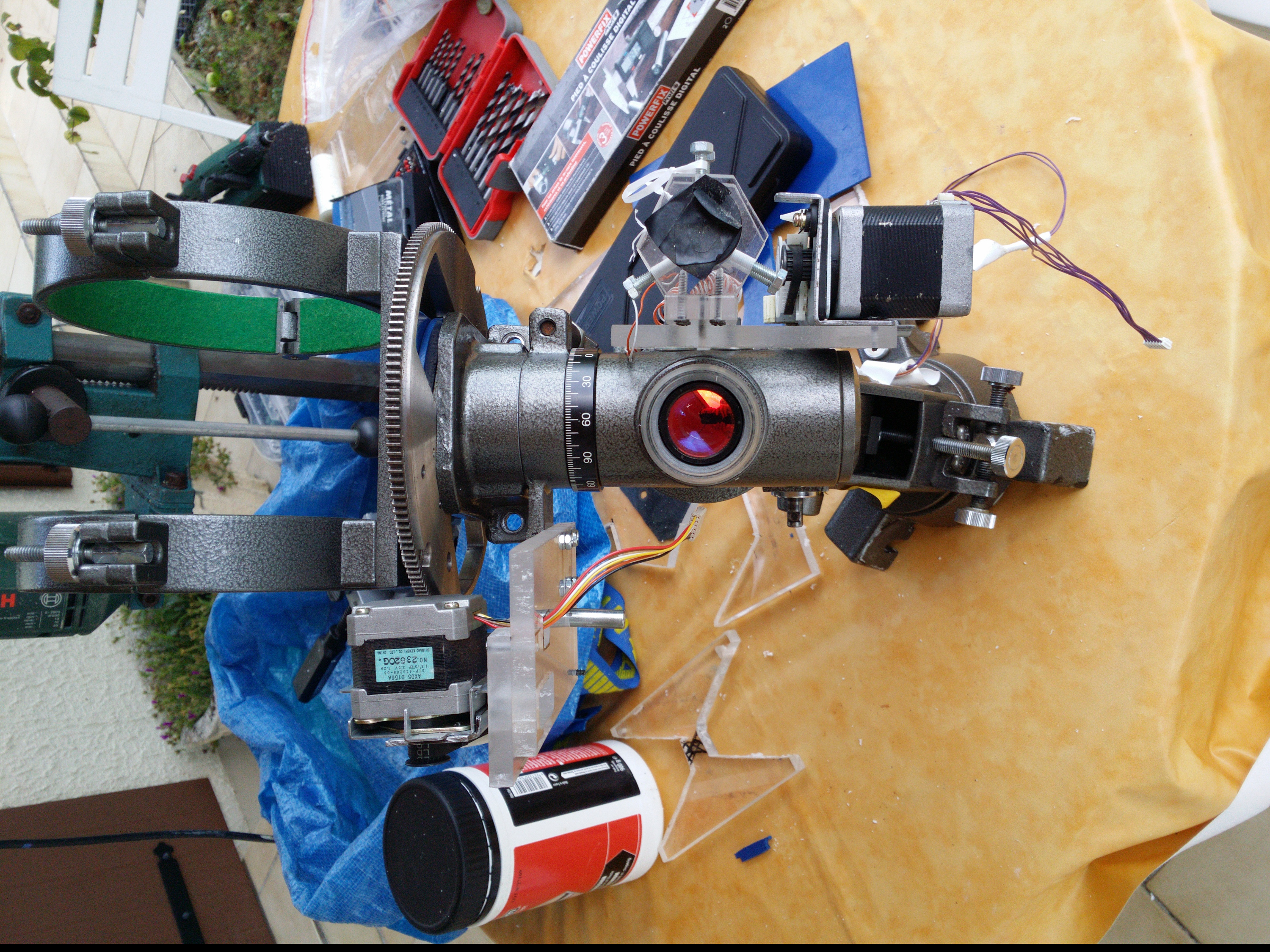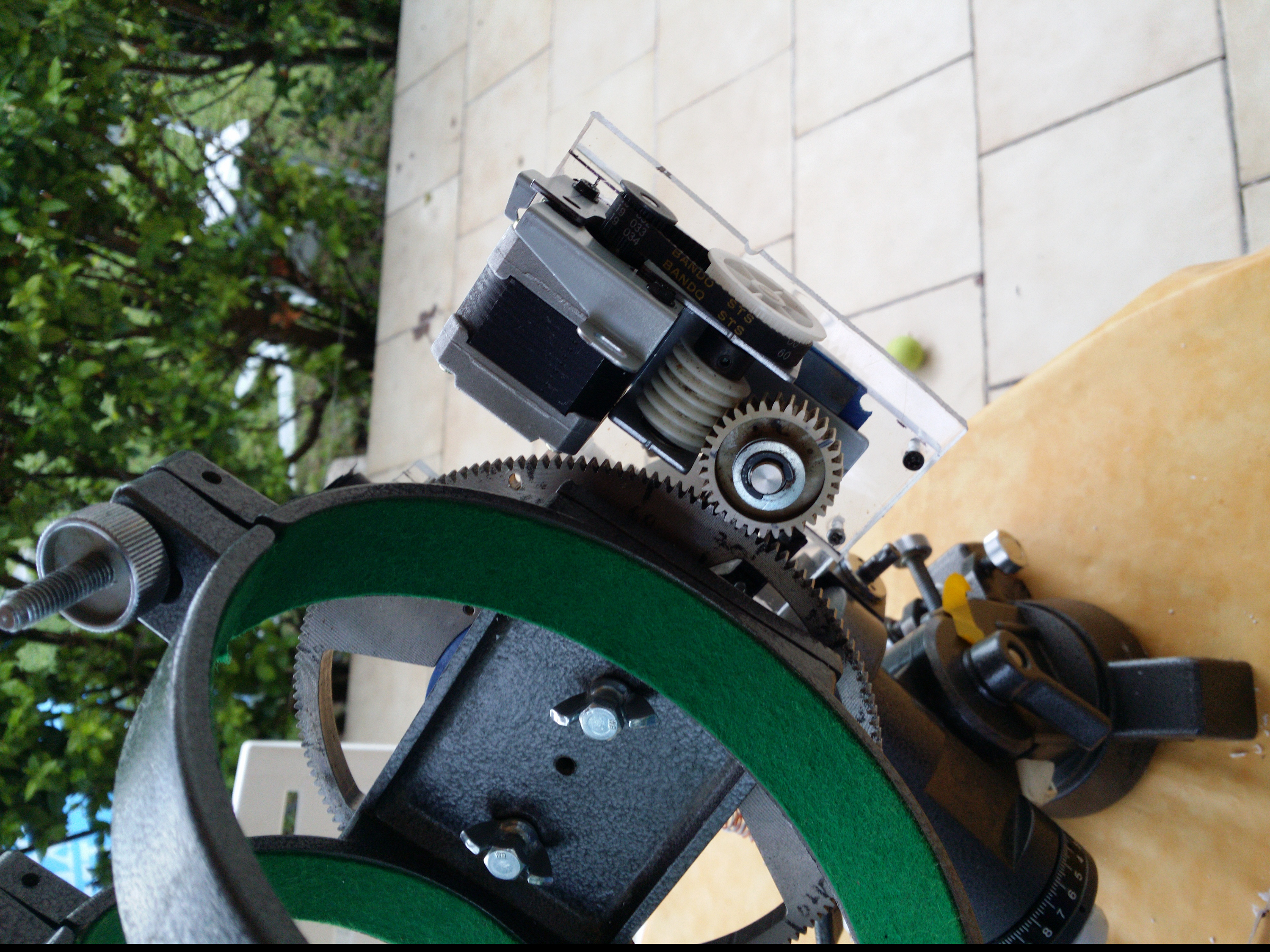 Ce télescope m'a été transmis par un ami. Il a été remis en état et ensuite motorisé sur l'axe de suivi de la rotation de la terre.