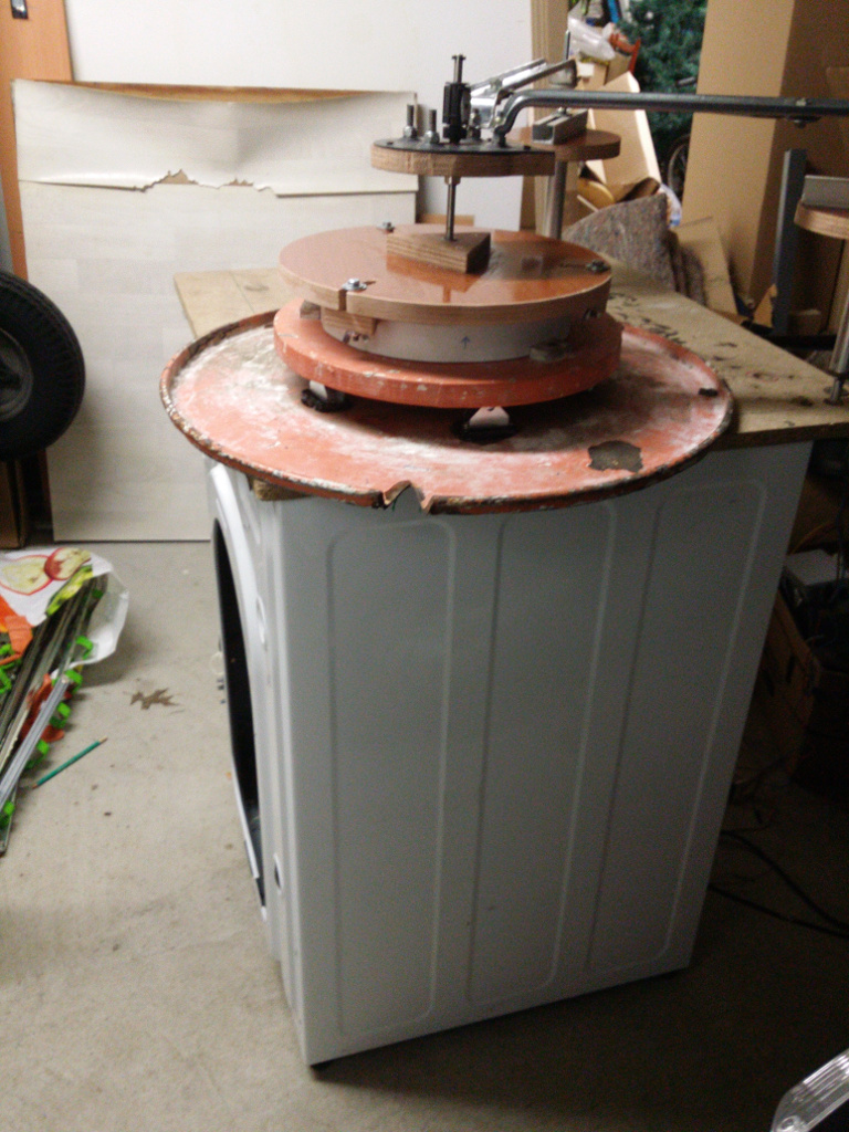 - Un moteur de machine à laver qui entrainera le plateau principal et deux moteurs d'essuie glace pour les petits plateaux. Le moteur principal est fixé sur le châssis de la machine à laver.